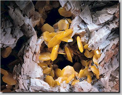 Wulfenit, Bleiberg, Österreich. Bildbreite 3 cm.
