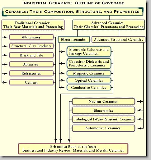 Bild 1. Einteilung keramischer Werkstoffe (aus "Industrial Ceramics", Britannica Online)